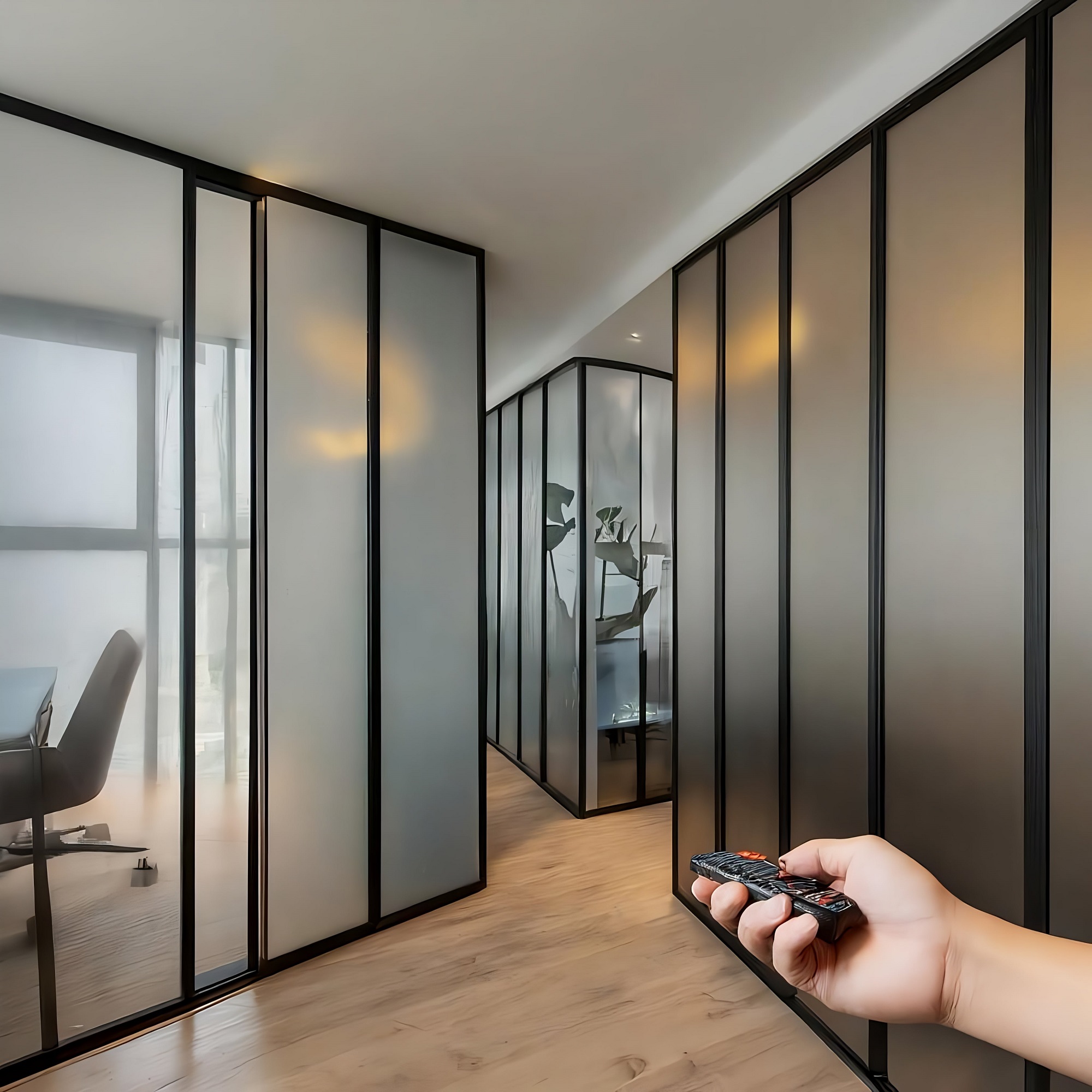 شیشه هوشمند به نوعی از شیشه گفته میشود که قابلیت مات و شفاف شدن را داراست. این پروسه توسط لایه ای از فیلم مخصوص هوشمند صورت میگیرد که توسط یک باکس کنترل و ریموت قابلیت تغییر وضعیت از شفاف به مات و بالعکس را داراست. و به شما این امکان را میدهد تا با استفاده از تغییر وضعیت شیشه حریم خصوصی خود را تغییر داده و جلسات خصوصی خود را در محل کار خود برگزار کنید.